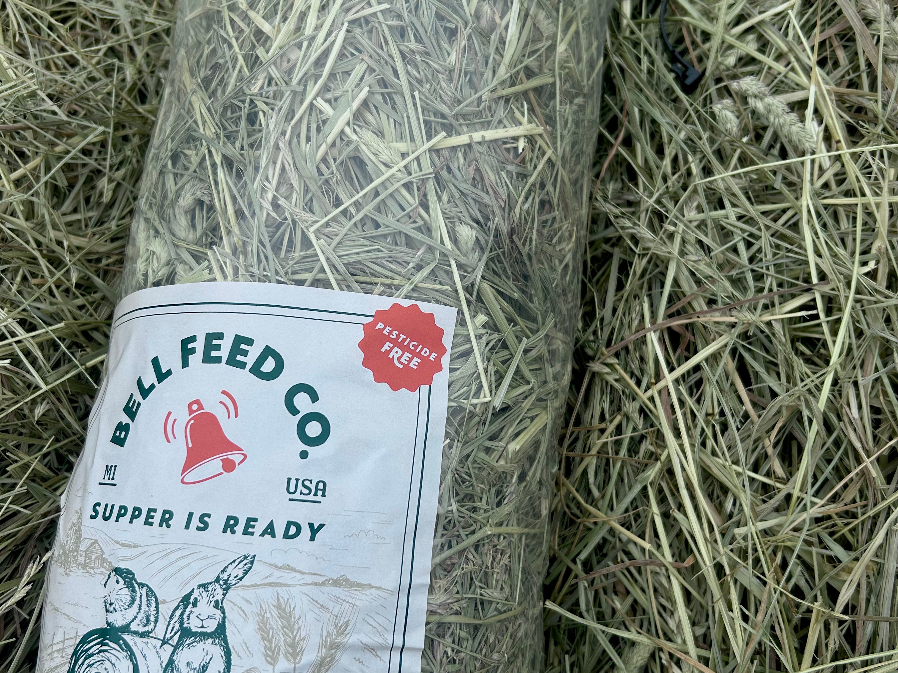 It's essential to provide your chinchilla with an unlimited supply of hay at all times. Hay is crucial for their dental health, digestive system, mental stimulation and enrichment. Find more information in our blog series "Bell Feed Co Pantry-Whats For Supper?"